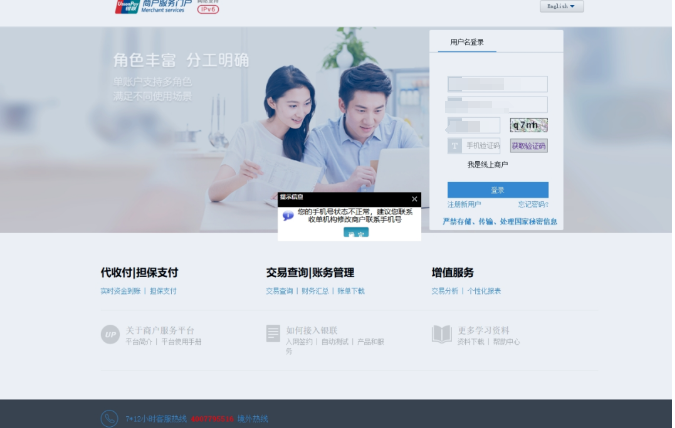 在电脑端的浏览器中打开银联商家中心官网:https://merchant.unionpay.com/join/